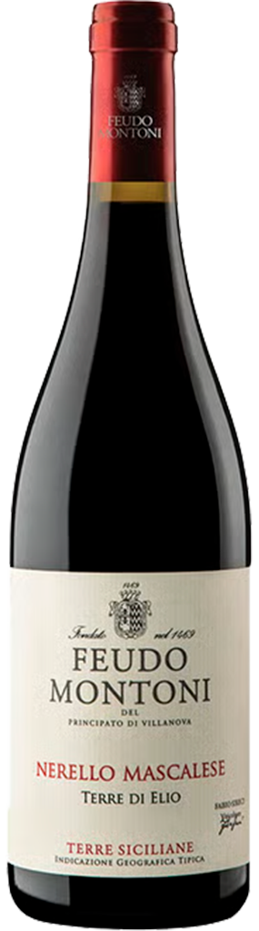 Vinhedos: Localizado a 700 metros de altitude em solo arenoso e pedregoso, o vinhedo é voltado para o leste e formado por vinhas de 35 anos, enxertadas a partir das antigas “plantas-mãe” de Nero d’Avola, preservando o DNA original de Feudo Montoni.